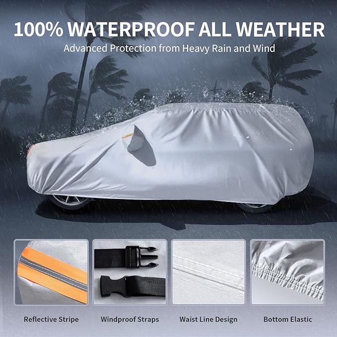 - 【Heavy-Duty Materials】Dozentro car covers are constructed from heavy-duty materials. The outer layer of PE provides 100% waterproofing, while an aluminum membrane in between extends the cover's lifespan. This makes it an excellent choice for long-term use.