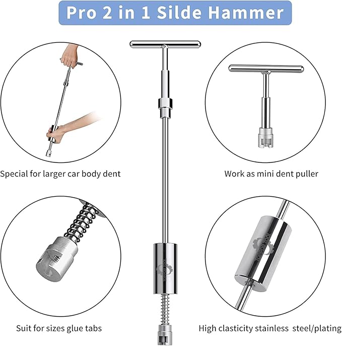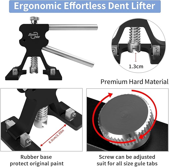 - One Kit, Every Dent: Say goodbye to a garage full of specialized tools. This comprehensive dent remover tool for car is engineered to handle a wide array of damage—from common door dings and creases to extensive hail damage. The versatile dent puller kit comes with all the necessary attachments to adapt to dents of any size, shape, or location on your vehicle, making it the only tool you need for most repair scenarios.