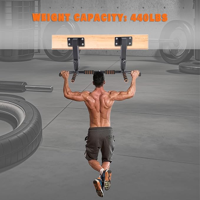- ▲DIMENSION: Joist wall mount chin up bar assembled dimensions: L 36.6” x W 6.2” x H 18.9-24.4”. Max Capacity: 440 lbs. Define a generous workout space for your home gym