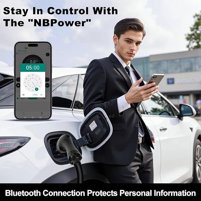 - 【User-Friendly Design】This Level 2 charging features a convenient built-in display. Through the display, Bluetooth, and the companion app, you can remotely monitor and control your EV charging status, schedule timed charging to reduce peak-hour costs, and enjoy plug-and-play functionality. You always maintain clear control over the charging process (Bluetooth and app access require no registration, protecting your privacy).