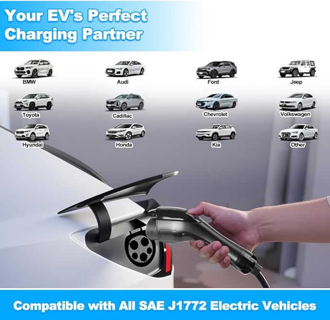 - 【High Compatibility】This Electric vehicle charger offers exceptional compatibility, capable of charging multiple vehicles simultaneously. Whether it's your own vehicle or those belonging to friends and family, any electric vehicle or plug-in hybrid equipped with an SAE J1772 connector. It will compatible with Hyundai, Nissan, Honda, Jeep, Mercedes-Benz and so on. It's the ideal choice for all types of electric vehicle charging stations.