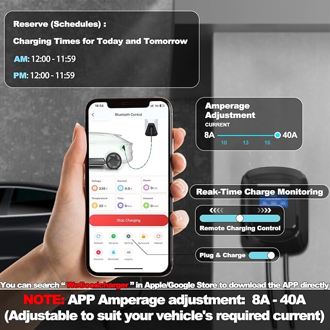 - 【User-Friendly Design】This electric vehicle charger supports Bluetooth (ensuring privacy), Wi-Fi, or card-based activation. Through the companion app, customize current settings and schedule charging plans—everything at your fingertips. Simply preset charging times to automatically take advantage of nighttime discounted rates, effectively lowering your electricity costs—making every charge a smart choice.