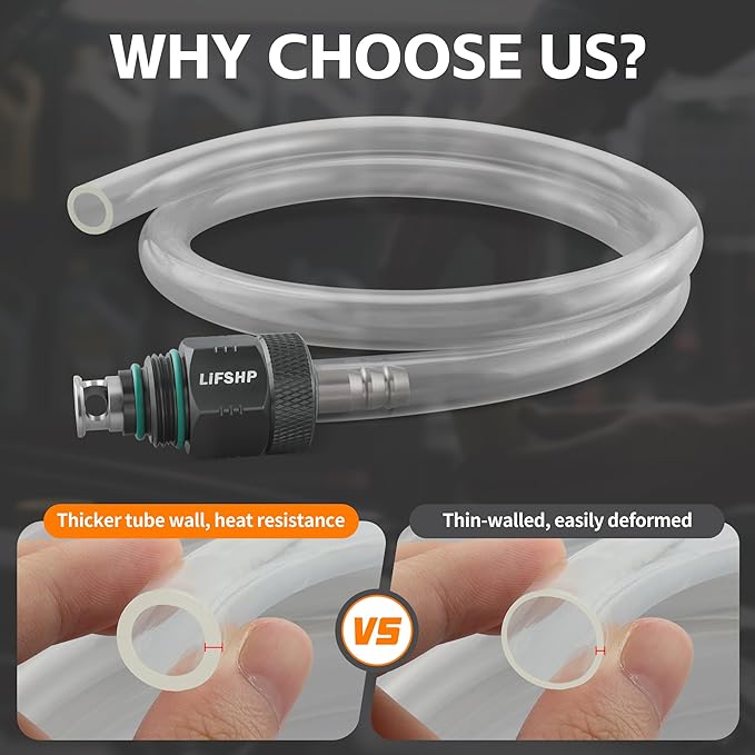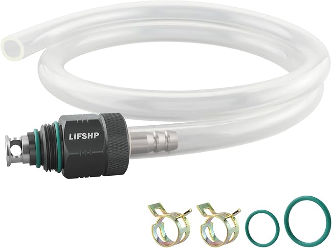 - HIGH QUALITY:It is precision cnc machined from solid aluminum for a perfect fit. anodized while, no fading, no deformation, service life of up to several years, the hose is upgraded and thickened, high temperature resistant, and the included clamp can make it firm and not fall off