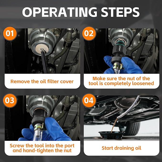 - INSTRUCTIONS:you simply remove the drain plug of the oil filter housing and screw in the tool in the closed position, and then turn the wheel to the open the valve to let the oil drain out. When the oil finishes draining, turn the wheel again to close the valve, remove the tool, and then proceed to remove the oil filter housing as normal