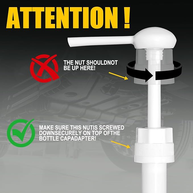 - Versatile Thread Compatibility - Designed to fit a wide range of gallon bottles, this pump features four interchangeable thread sizes that can easily be swapped with the included collars. It is compatible with Red Line Gallon Bottles, AGL, Toyota ATM, Amsoil, and Castrol Edge Wide Mouth Quart Bottles