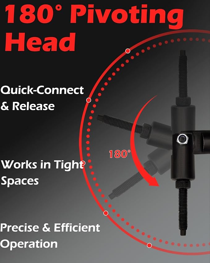 - Instant Switch & Swivel for Tight Spaces:The quick-release swivel joint connects or detaches the slide hammer in seconds. The 180° pivoting head provides perfect maneuverability and alignment in confined areas, ensuring efficient and precise pulling force application where other tools can't reach.