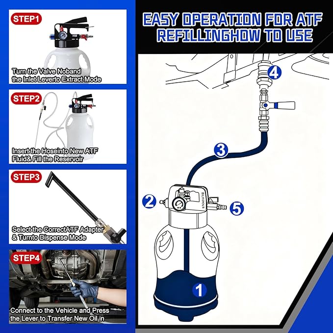 - 【10L Extractor & Dispenser】2.6 Gallon pneumatic fluid transfer pump uses compressed air up to 170 psi to extract and 36 psi to dispense, generating strong suction and tight sealing, maximum fluid recovery, it eliminates residue, it's the ideal tool for oil changes.