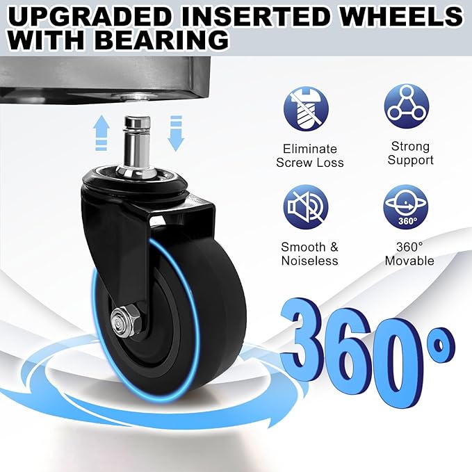 - Ease to Move - Our workshop stool is equipped with four 360° rotating universal caster wheels, ensuring excellent maneuverability on any surface. These high-quality wheels provide robust support for the stool, enabling smooth pivoting even on uneven or complex terrains. They operate quietly, offer long-lasting durability, and ensure stable movement