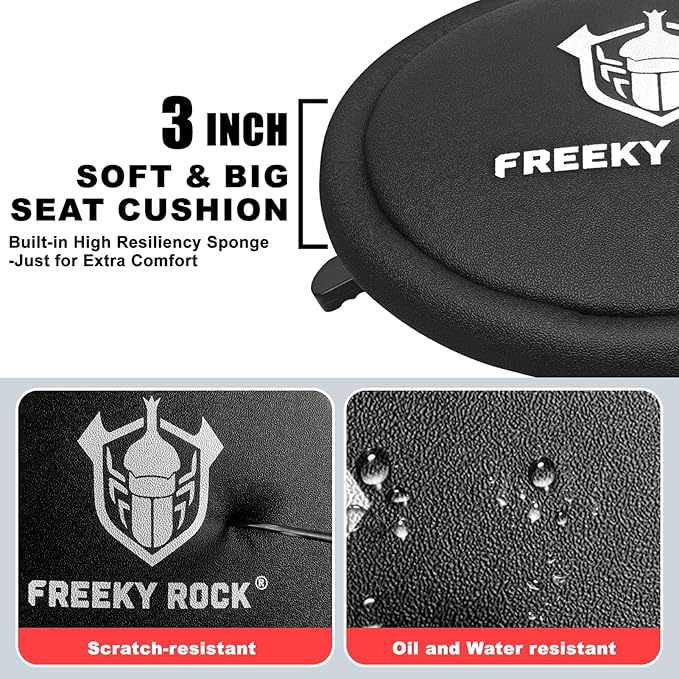 - Comfortable Rolling Shop Chair - the garage shop chair with removable handle backrest provides high back lumbar support and reduces fatigue during long hours of work. 3 inch thick seat cushion is made of waterproof, scratch resistant, anti slip leather and high-quality memory foam padding, ensuring comfortable even during extended periods of sitting. In addition, Our Rolling Seat with square tube and steel ring structure provides space for resting the feet
