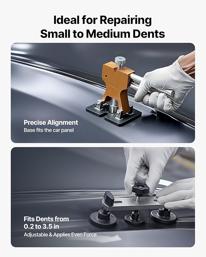 - Easy Deep Dent Repair: The 2-in-1 pull rod in this paintless dent repair kit converts into a long T-bar with a slide hammer, giving you strong pulling power with less effort. It includes three powerful suction cups to fix big dents without glue