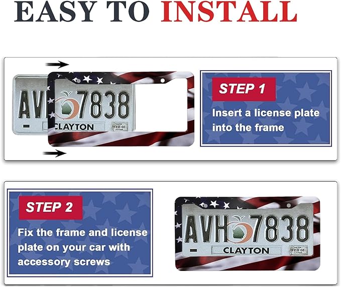 2Pcs American Flag License Plate Frames - KMBCAM Universal Aluminum License Plate, Gloss Patriotic License Plate Cover Hold for Car for Men with Free Screws Caps, Gifts for Friends or Family.