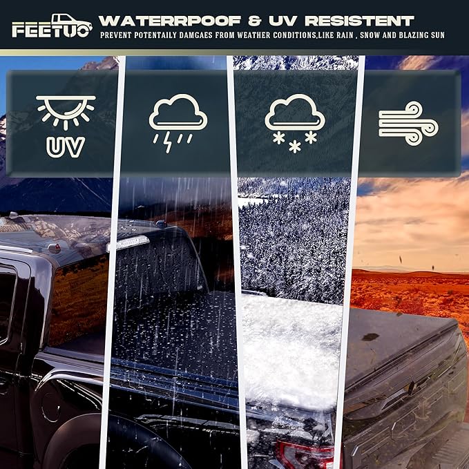 - Patent Design: FeeTUO Tri Fold Truck Bed Cover features a unique quick release clamping system allowing the cover to fold easily into thirds at the hinges Perfect for loading taller items such as ladders or building materials while maintaining a secure fit