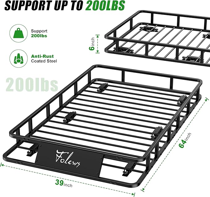 - Large 64" Roof Basket for Extra Storage: This 64 x 39 x 6 inch roof rack basket adds significant cargo space to your car, SUV, or truck. Ideal for camping gear, luggage, tools, and bulky items. Freeing up room inside the vehicle on long trips