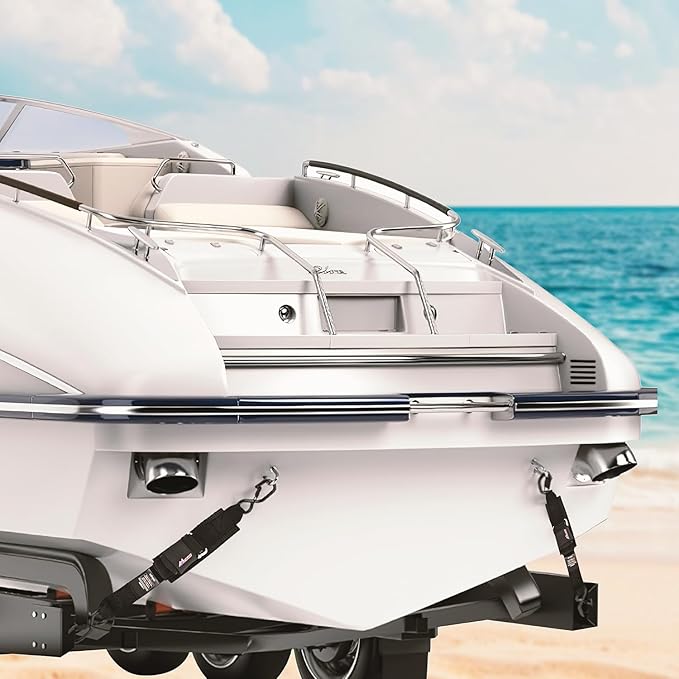 - 【Wide Application】 These boat straps trailer tie downs ensure a secure grip, preventing slips and shifts during movement to damage to your watercraft. Compatibility with marine trailers featuring tie-down points, whether you are securing a pontoon, speed boat, sall boat, jet ski, etc.