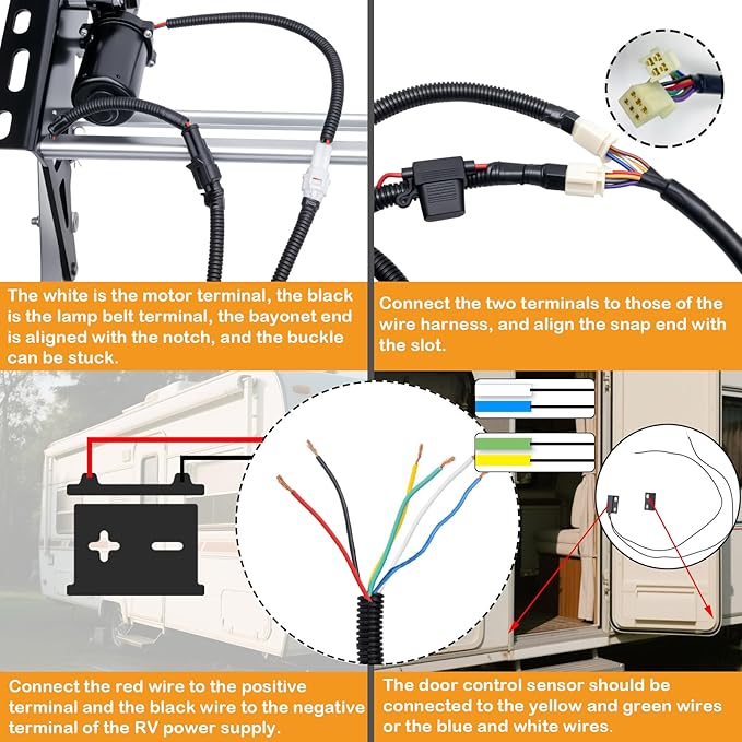 - Electric Folding Steps: This 2-step RV steps can be automatically unfolded when connected to a DV12V power source through the installation of sensors and controllers on the door, ensuring convenient entry and exit. It automatically folds when the door is closed, providing timely response and ensuring safety for elderly, children, and individuals with mobility issues, preventing falls and accidents. Additionally, it features integrated LED lighting that turns on automatically when the steps unfold, illuminating the path for safe access. The lights then turn off automatically when steps fold back up, ensuring energy efficiency and convenience.