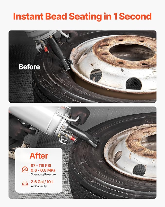 VEVOR Portable Tire Bead Seater, 2.6 Gal/10 L Air Bead Blaster, Handheld Tire Inflator Tool, 87-116 PSI Operating Pressure, Trigger Seating Inflator for Car, Compact SUV, Light Truck, E-Bike, RV, ATV