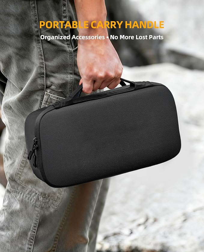 - 【Portable Design · Grab and Go】: This all-in-one jump box with air compressor features an ergonomic, durable carry handle that distributes weight for easier portability, ready for use in the garage, outdoors, or on the road. The included EVA storage case is shockproof and wear-resistant, with a handle and mesh pocket to neatly store the jump box, jumper cables, and accessories, keeping your vehicle organized. The upgraded honeycomb vent design reduces battery temperature by up to 30%, ensuring stable performance even during extended use. Every detail is designed for practicality, making carrying, storing, and operating effortless.
