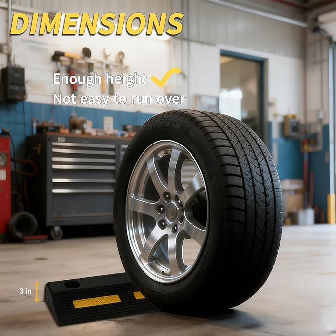 - VEHICLE & GROUND FRIENDLY:The soft rubber material is non-abrasive and won’t damage tires or paved surfaces. Its ribbed anti-slip surface improves tire grip, adding an extra layer of safety while being eco-friendly and weather-resistant.