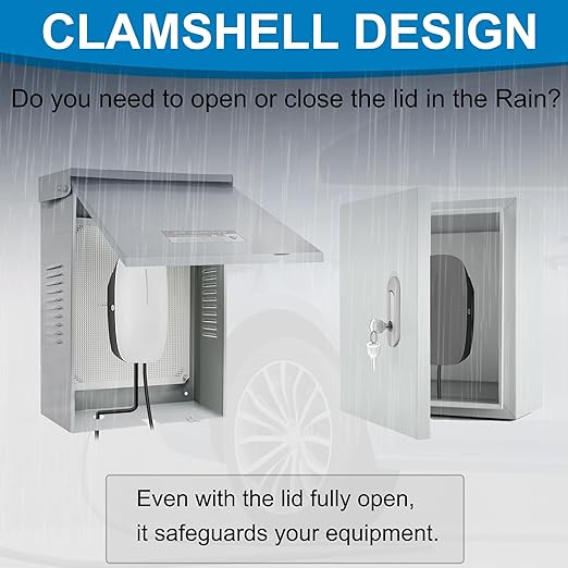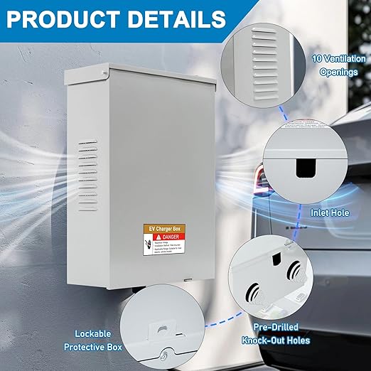 - Multi-Functional Wall-Mount Design: The outdoor charging station enclosure comes with a complete set of mounting accessories and pre-drilled mounting holes for quick and convenient wall installation. The removable mounting backplate allows for effortless charger installation.