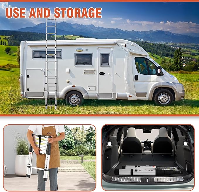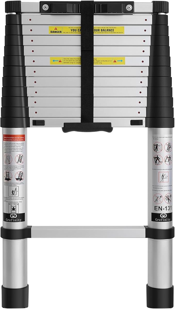 - Ultra-Portable Design: The Grefinity Telescoping Ladder's lightweight aluminum construction makes it effortless to carry and store. Compact enough to fit in tight spaces like stairwells, behind doors, or car trunks - taking up far less space than bulky traditional ladders.