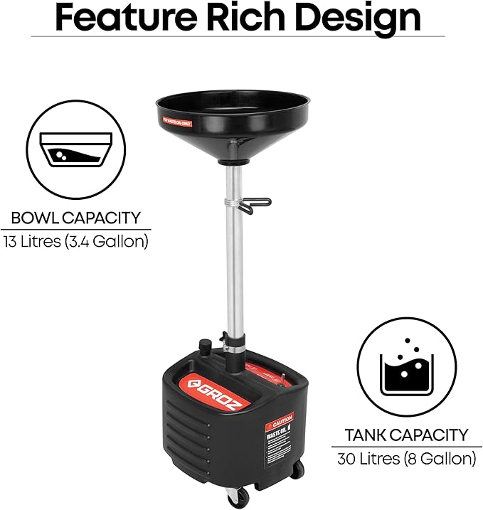 - EFFICIENT OIL CHANGES: Large 8-gallon capacity with wheeled design for easy mobility, perfect for multiple vehicle servicing