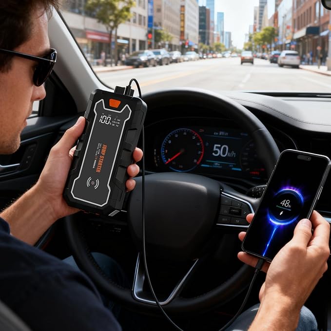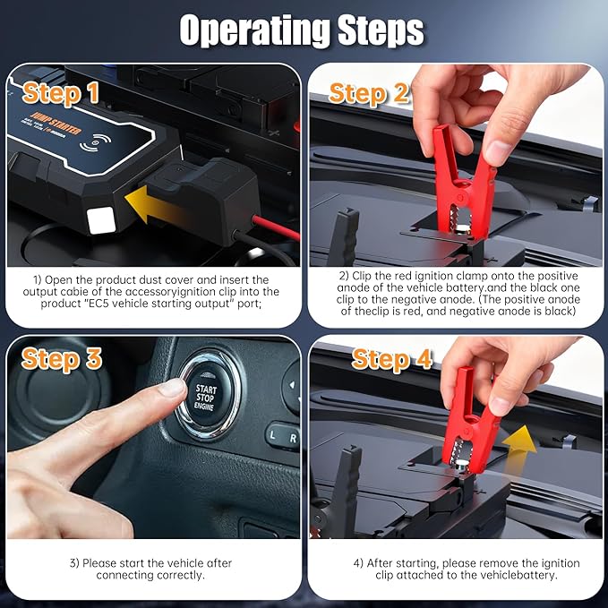 - Strong Starting Power: 2000A start / 3500A peak, jump-starts 12V vehicles up to 12.0L gas & diesel. Works from -4°F to 140°F with 10,000+ uses.