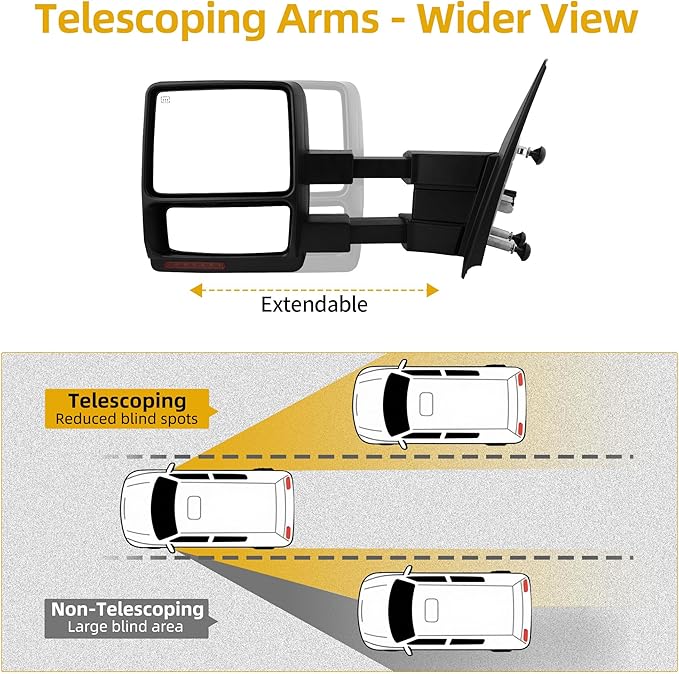 - Manual Folding & Telescoping Design: Designed with manual folding and telescoping capabilities, making it easy to extend for towing and fold in for convenient parking or storage.