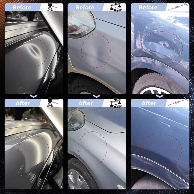 - Quick & Professional DIY Dent Fix: Repair hail damage, door dings, creases, auto dents, and larger dents at home in just minutes—no expensive trips to auto body shops. Save money while safely restoring your vehicle’s surface.