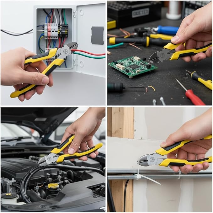 - Versatile Applications for All Wire Cutters Types - Ideal as heavy duty wire cutters for thick electrical wires/cables, diagonal cutters for electronic component trimming, side cutters for tight-space cuts, and even auxiliary wire cutter for DIY projects—also suitable for light bolt cutter needs (small bolts/nails).