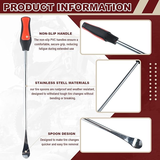 - 【Premium Quality Tire Tools】Crafted from durable 45# steel, our tire spoons are rustproof and weather resistant, designed to withstand tough tire changes without bending or breaking. The high-quality construction ensures long lasting performance, ideal for both professional and DIY tire repairs