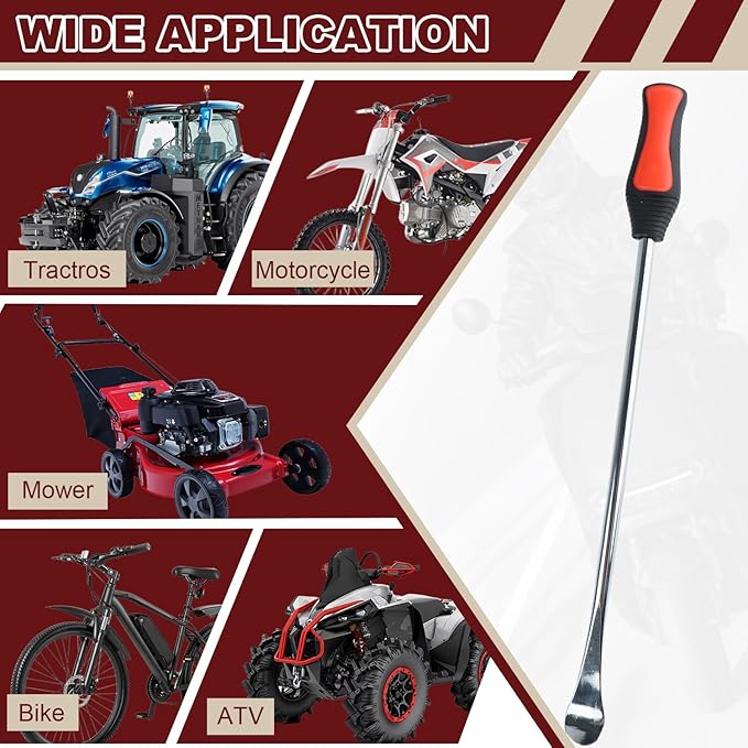 - 【Suitable for Multiple Applications】Perfect for motorcycles, dirt bikes, ATV, lawn mowers, tractors, and more. This versatile tire tool kit is ideal for both at-home maintenance and trail-side repairs, providing the tools you need to keep your vehicles running smoothly, no matter where you are