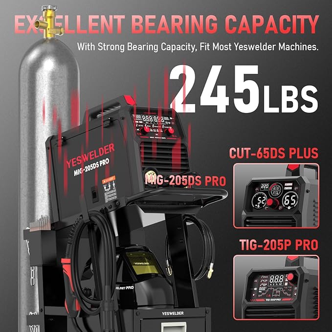 - HIGH WEIGHT CAPACITY: With a robust weight capacity of 245lbs, this cart is built to meet the demands of various welding tasks, providing stable and reliable support for your equipment.