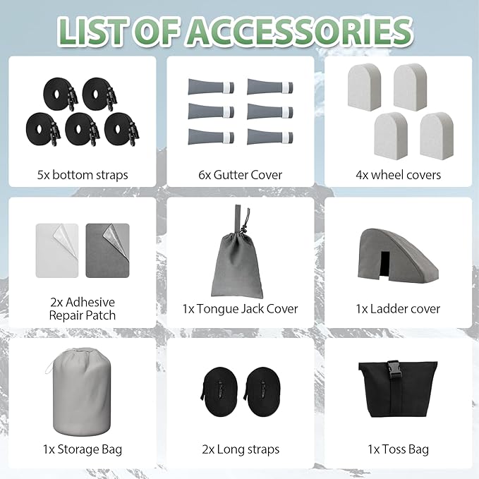 - Year-Round RV Protection :Protect your travel trailer cover from UV rays, snow, and debris in all seasons. This rv winter cover defends against sap, dust, and freezing conditions.