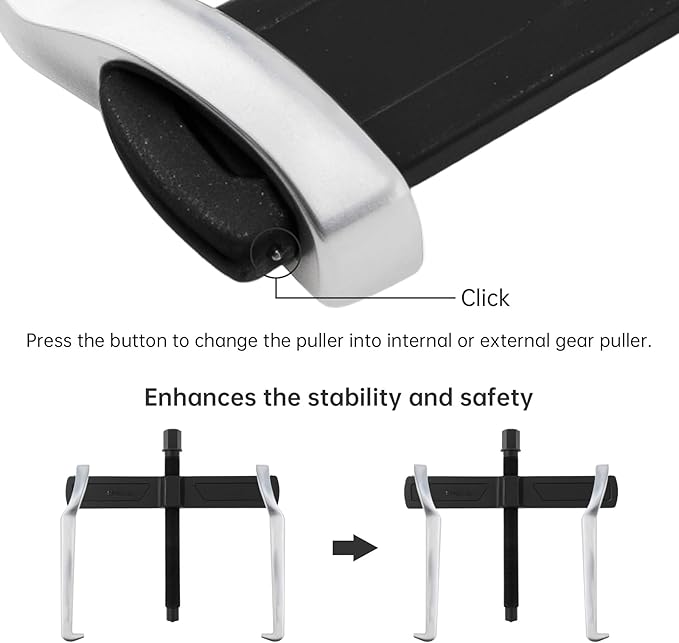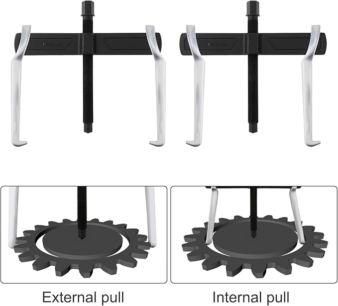 - Multi-purpose Reversible Jaw Puller - The two arms of the puller can be mounted with the claws facing inside or facing outside, the two jaw gear puller suit for internal and external pulling of bearings and other components.