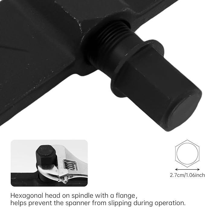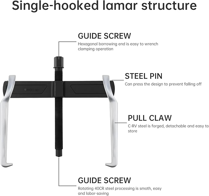 - Ease of Use - Hexagonal head on spindle with a flange, helps prevent the spanner from slipping during operation. Button on beam enhances the stability and safety, also makes the 2-jaw separator tool easily to change the puller into internal or external gear puller.