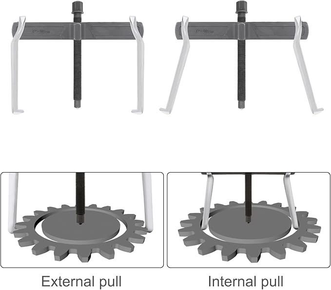 - Multi-purpose Reversible Jaw Puller - The two arms of the puller can be mounted with the claws facing inside or facing outside, the two jaw gear puller suit for internal and external pulling of bearings and other components.