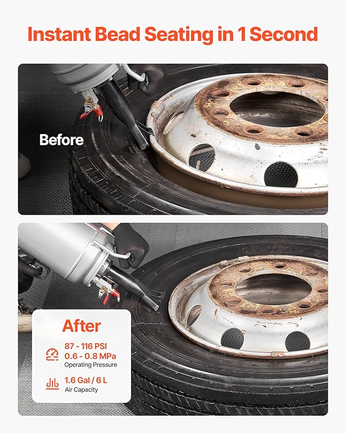 VEVOR Portable Tire Bead Seater, 1.6 Gal / 6 L Air Bead Blaster, Handheld Tire Inflator Tool, 87-116 PSI Operating Pressure, Trigger Seating Inflator for Car, Compact SUV, Light Truck, E-Bike, RV, ATV