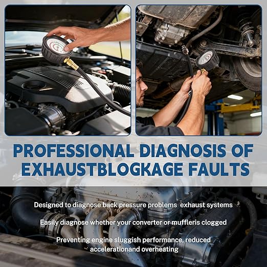 Exhaust Back Pressure Tester Kit, 7-Foot High Temp Hose & Carrying Case, Automotive Diesel Engine Diagnostic Tool for Accurate Pressure Testing