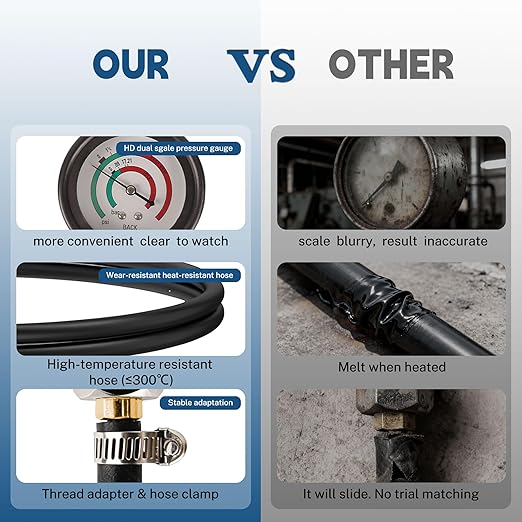 - 【Extended Reach with High-Temp Durability】Gain the freedom to test from the driver's seat with the generous 7-foot hose. Crafted from silicone, it's not only wear-resistant but also withstands temperatures up to 300°C, ensuring reliable performance and longevity even in demanding under-hood conditions.