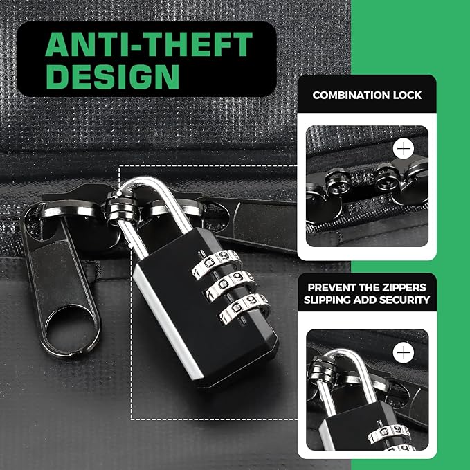 - ANTI-SLIP & SECURITY - Car topper luggage carrier waterproof includes 2 Lashing Straps8 reinforced straps, Anti-Slip Mat, combination lock, That not only prevents from sliding, but also increases the security of your luggage; Whether you're driving on the highway or over rough terrain, Lashing Straps will keep your cargo bags firmly in place prevents paint scratches, prevents excessive noise, Enhances driving safety. give you peace of mind while on the road steer