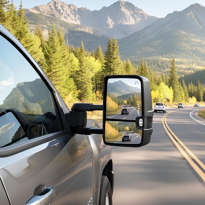 - 2.Advanced Multi-Functional Features: Features power adjustable heated mirrors, bright LED signal lights, arrow lights, reverse lights, and black-dotted clearance lights. Includes manual telescoping (18.5" to 21.6") and foldable design for maximum visibility, safety, and all-weather performance during towing