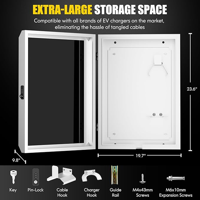 - Dual-Lock Security System: This EV charger box is equipped with a key lock and a combination lock to ensure the safety of electric vehicle chargers. It is ideal for installation in outdoor spaces
