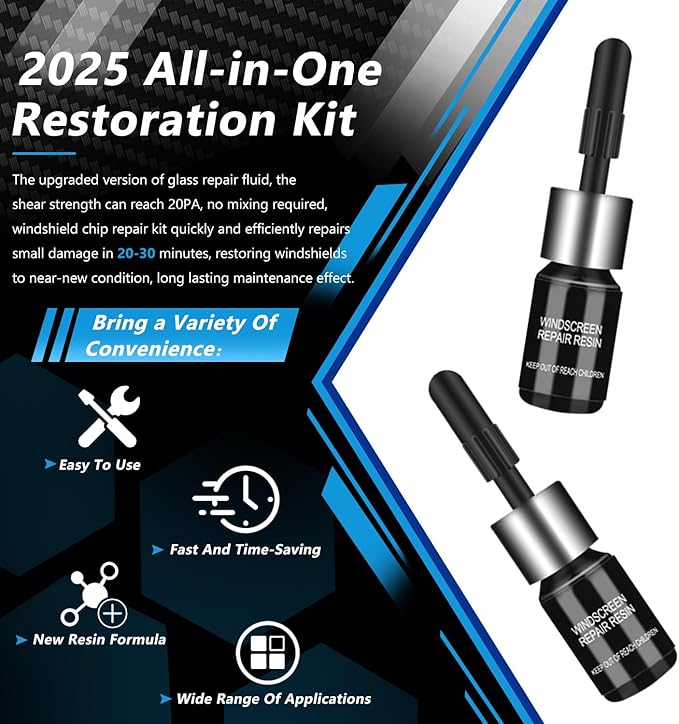 - Efficient Cracked Windshield Repair Kit - Save time and money with this windshield repair kit for chips and cracks. In just 20 minutes, you can repair cracks and chips, preventing further damage and maintaining the integrity of your windshield. This car window repair kit is a cost-effective solution for all types of damage.