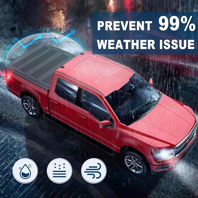 - Waterproof & UV resistant: Black textured powder coated face is UV resistant and no fading, IP68 waterproof test before shipment. Keeps your truck inside dry and clean. This tonneau cover also can be washed by soap and water, easy to clean.