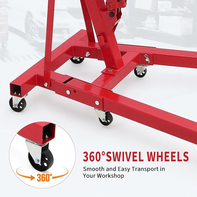 - 1. Unmatched Strength & Durability:Crafted from heavy-duty steel with a 4400 lb (2-ton) lifting capacity, this engine hoist delivers industrial-grade strength. The reinforced frame and anti-rust powder coating ensure stability and long-term reliability, even in harsh workshop conditions.