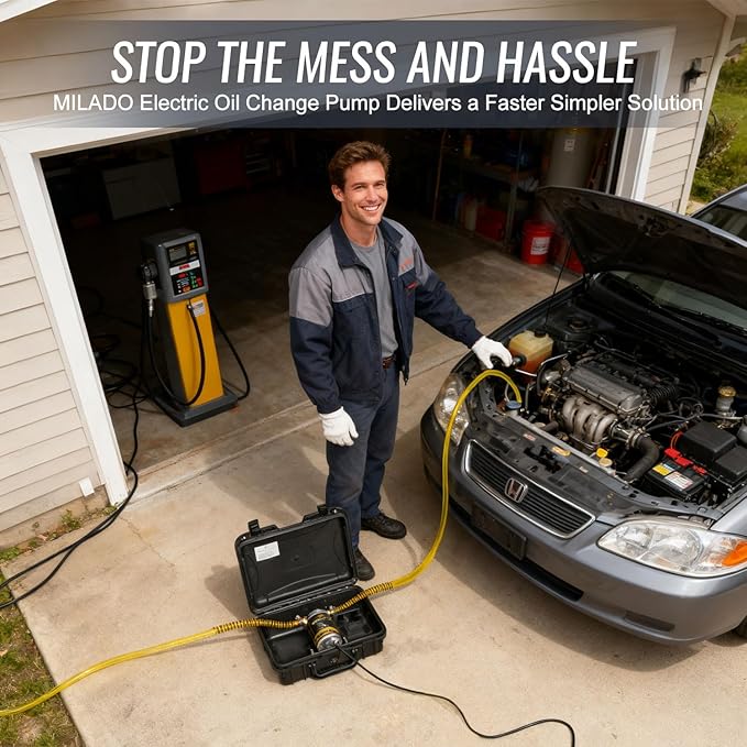 MILADO 12V 100W Oil Change Extractor Pump, Electric Engine Oil Pump, Portable Fluid Transfer Pump for Engine/Transmission/Gear Oil, Suitable for Boat, Car, Truck, Motorcycle, Lawnmower