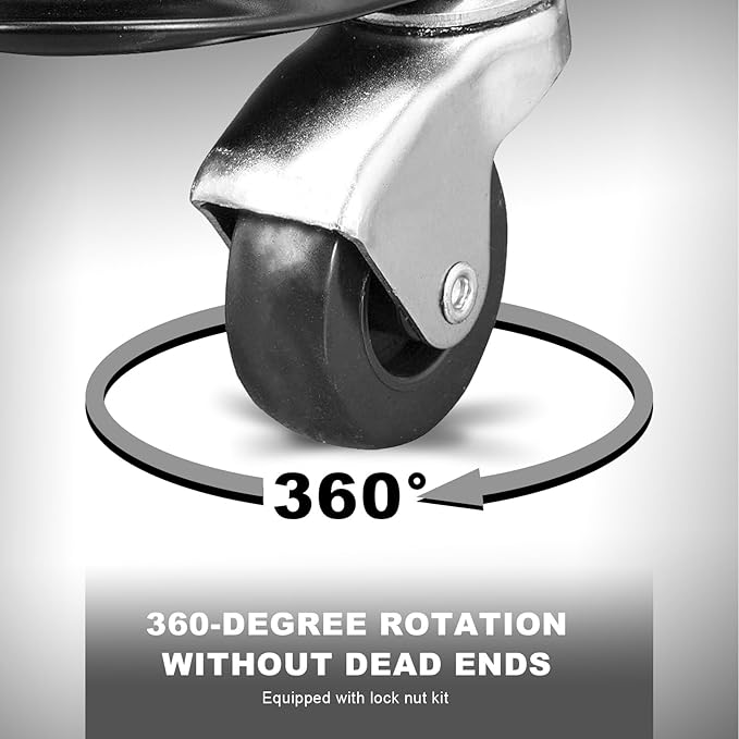 - Industrial-Grade Durability: Reinforced tubular steel frame with locknut-secured casters ensures stability under 250 lb loads. Anti-tilt design prevents tipping, backed by a rust-resistant finish for long-lasting use in garages or workshops.