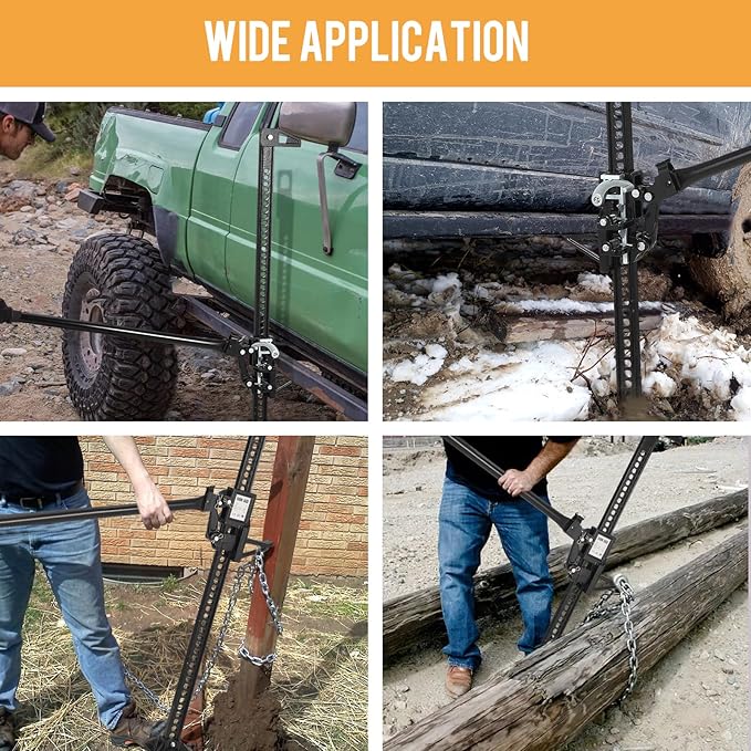 - Wide-Ranging Applications This multipurpose farm jack supports tire changes, uprooting trees, boat lifting, off-road vehicle recovery, and roadside rescue operations.