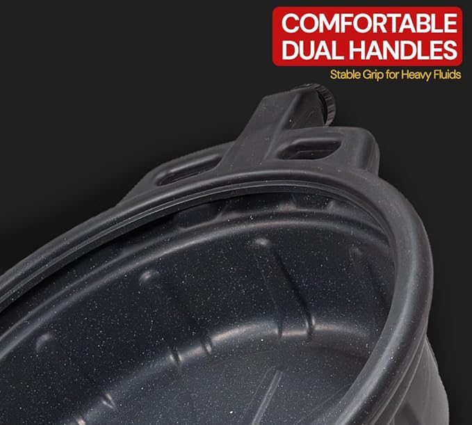 Mytee Products Automotive Oil Drain Pan - Black Plastic Anti Splash, Motor Large Oil Drip Catcher Pan for Changing Oil, Spill-Proof Design - 4.25-Gallon