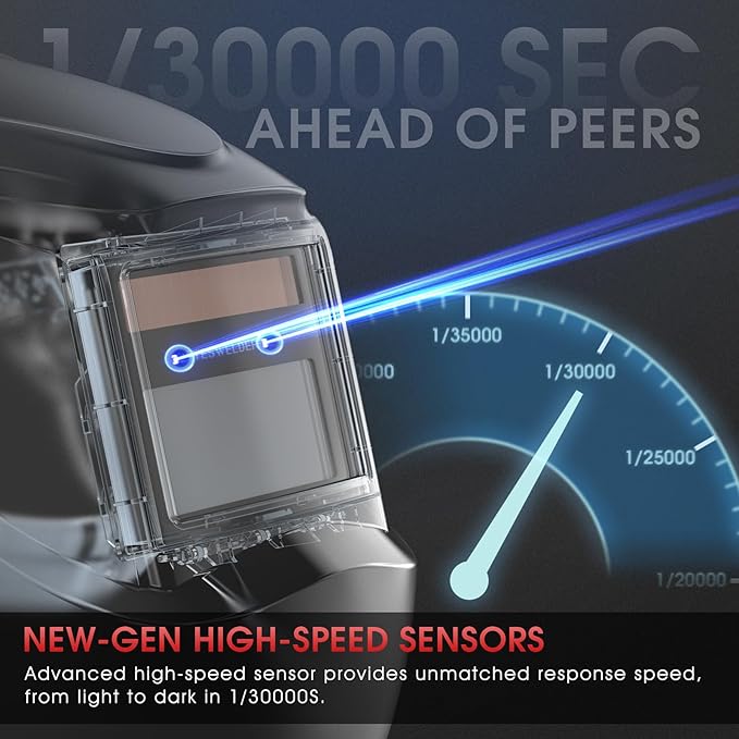 - FAST AUTO-DARKENING: 2 premium arc sensors trigger darkness in 1/30000 sec. Features adjustable sensitivity and delay controls for optimal performance in any lighting/arc condition.